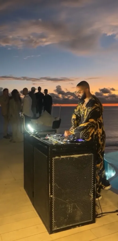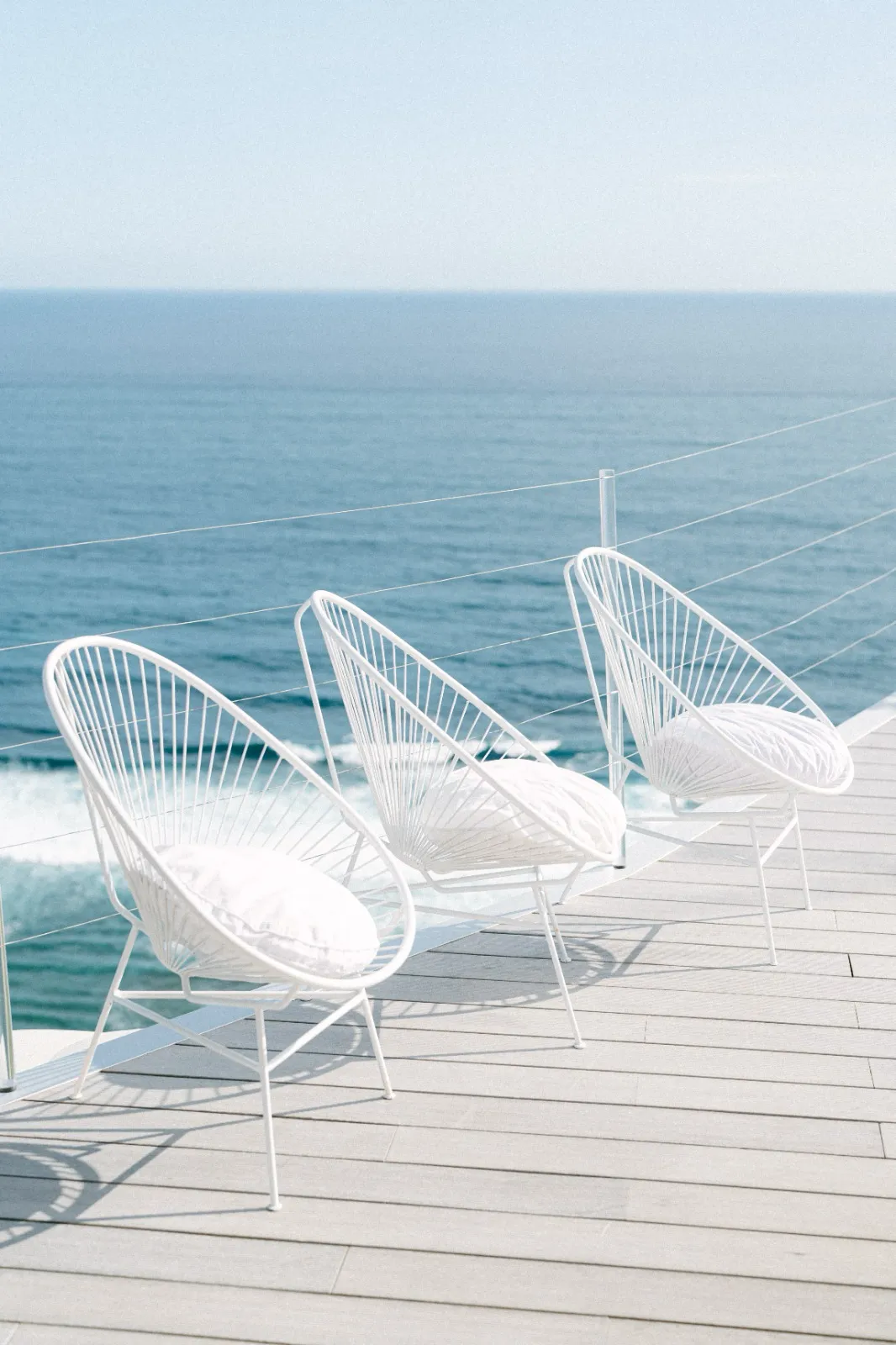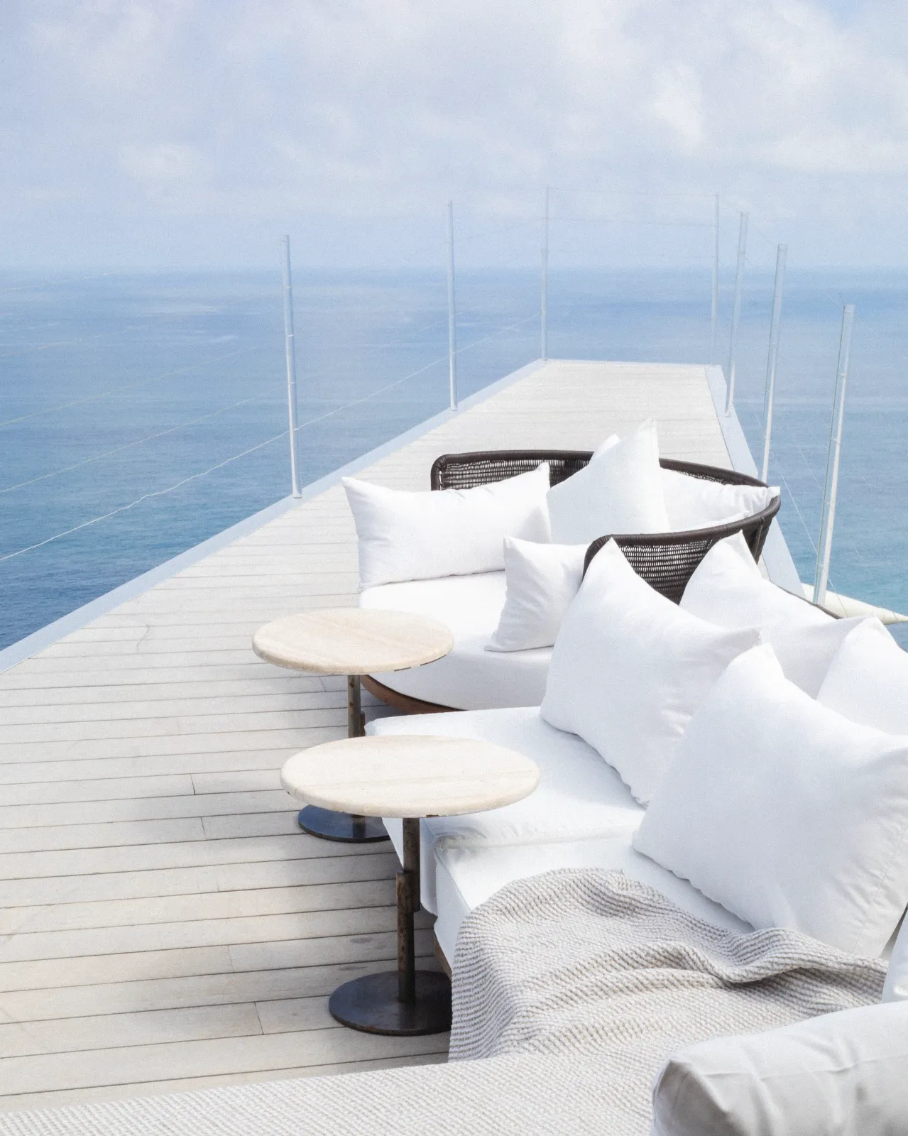 Meja romantis untuk dua di sayap jet atau sisi kolam.