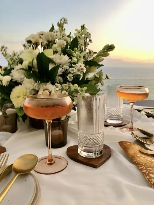 Termasuk alat makan fine dining, bunga segar, lilin, lampu romantis, air mineral atau berkarbonasi, layanan Butler.
